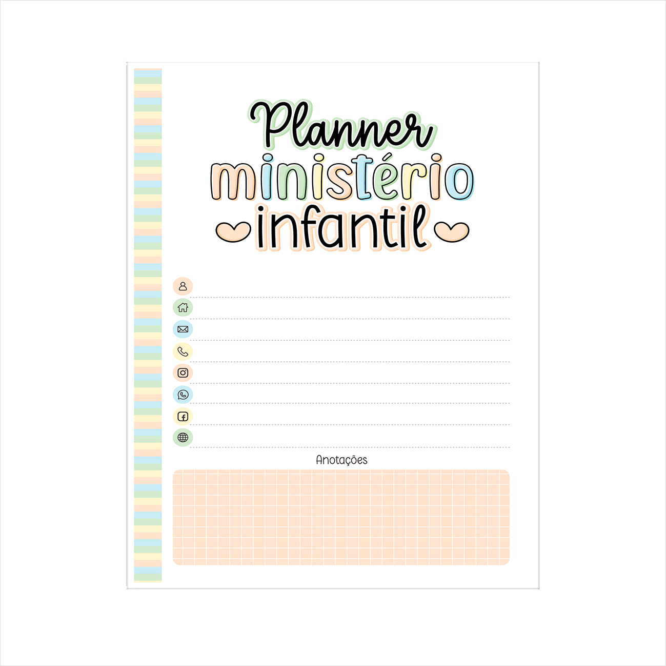 Um planner pensado para organizar aulas, ideias e atividades do ministério infantil com carinho e propósito. Noss miolo é vendido impresso, pronto para você encadernar e transformar em um produto encantador para sua papelaria. Ideal para quem trabalha com encadernação e quer oferecer algo útil, delicado e cheio de significado.